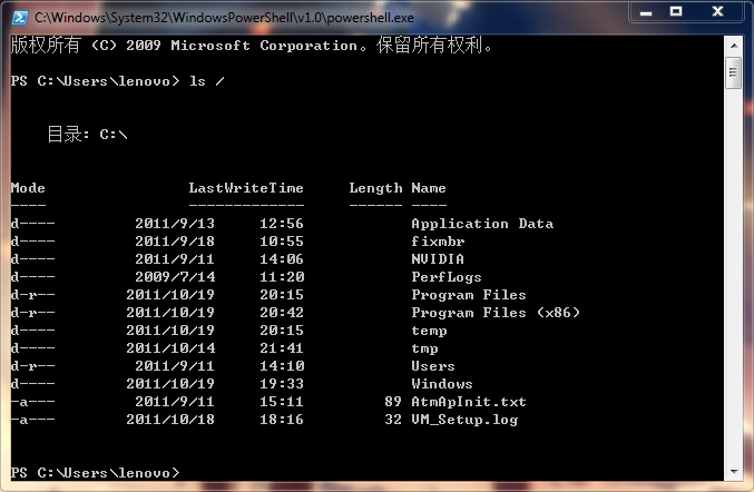 没错,我输入的确实是ls /,一个linux命令,一个列出根目录下文件夹的命令,然后,这个/Windows下开关命令混淆成根目录含义。完全乱套的说。。。不过1.0,我们能指望他做什么??好在有tab补全,支持cmd里的所有命令。get-command列出来300多条内置命令(其实更像内置程序),然后狗血是,26个盘符也计算进去了。。。